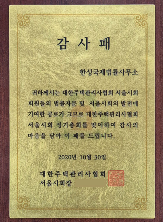김동화_감사패_대한주택관리자협회